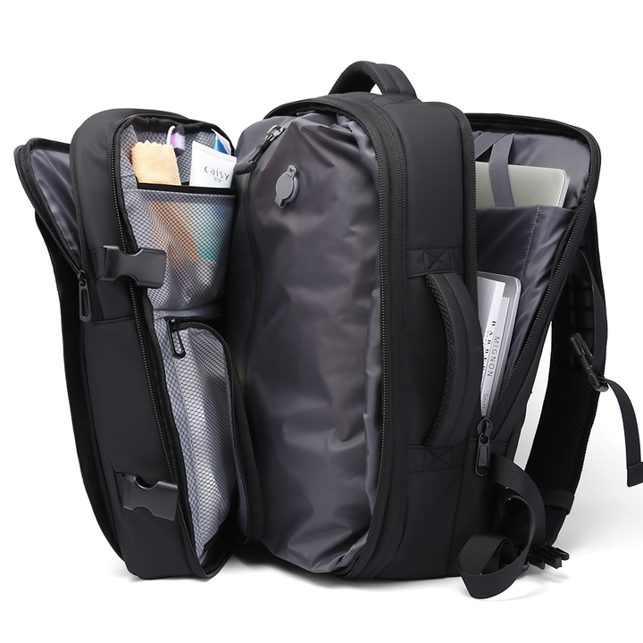 La mochila Max Travel es tu aliada perfecta para viajes al extranjero y escapadas de fin de semana. Su diseño inteligente incluye un sistema de compresión al vacío que te permite organizar tu ropa y otros objetos de forma eficiente, ahorrando espacio valioso en tu maleta. ¡Lleva todo lo esencial sin sacrificar la comodidad!